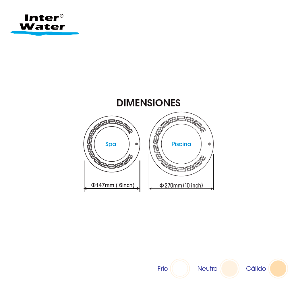 Reflector Inter NOVA LED Acero Inox, 15 cms, con Control – Inter Water