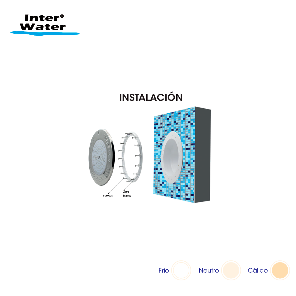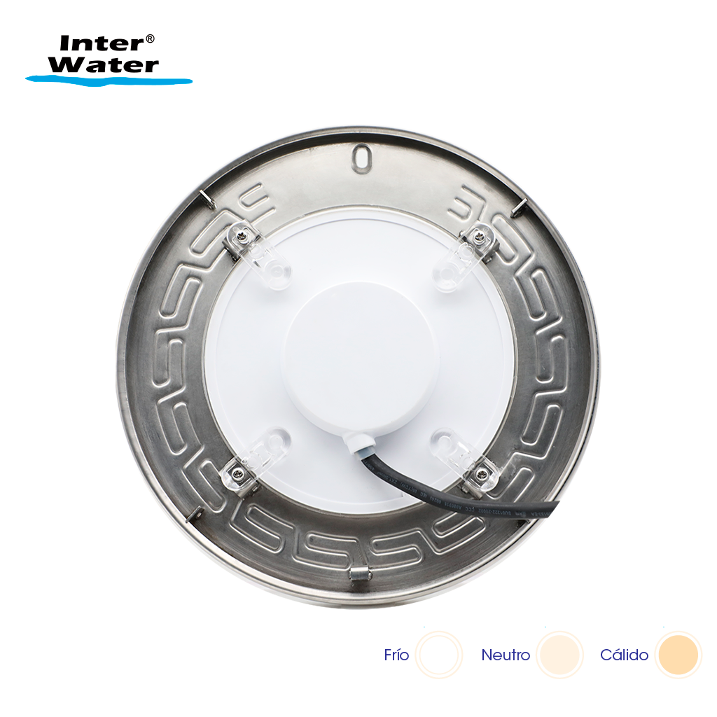 Inicio Equipamiento Reflectores Reflector Inter NOVA LED Acero Inox, blanco cálido y frío, 25 cms – Inter Water