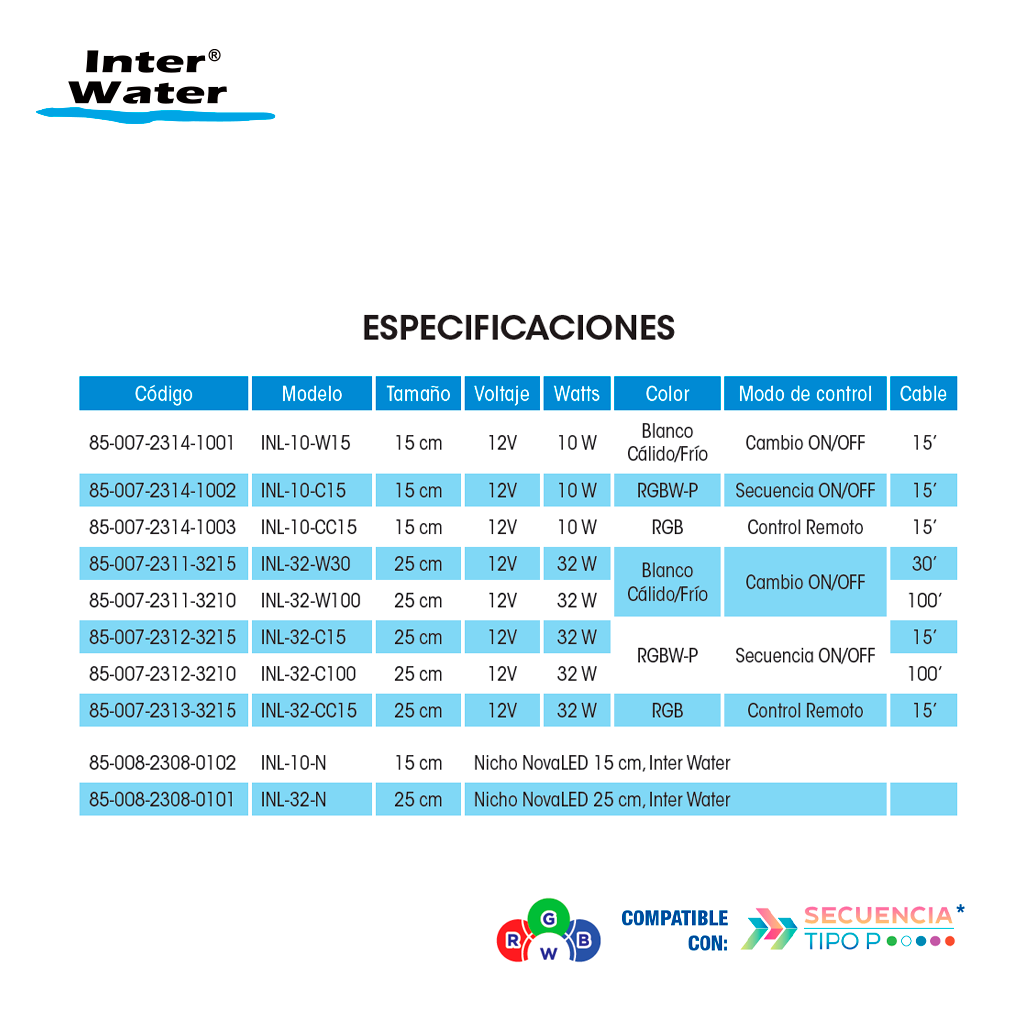 - Iluminación espectacular RGBW, incluye blanco sólido en los colores.