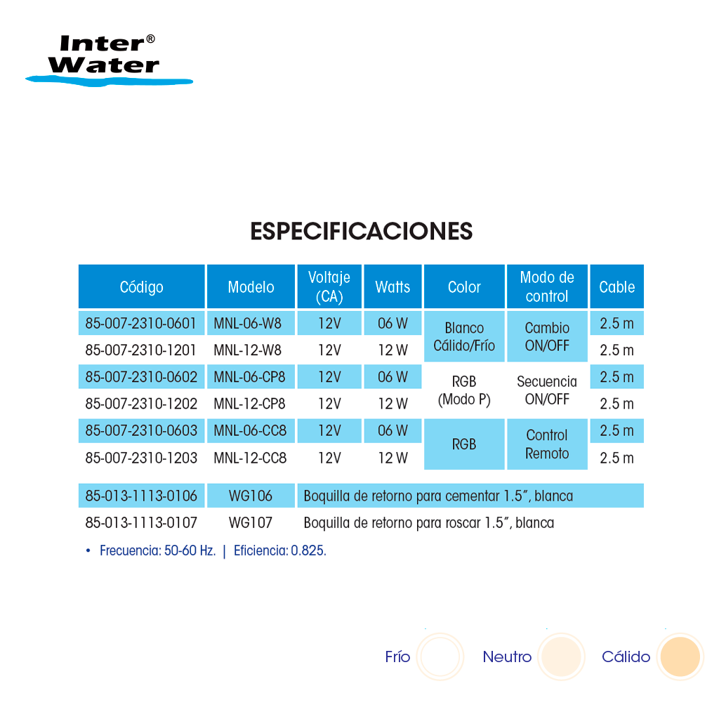 - Incluye blanco sólido en los colores. Tecnología LED que permite iluminación en Blanco frío, en Blanco cálido y Blanco neutro (combinando).